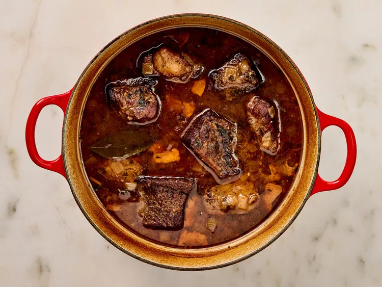 Transfer Dutch oven to the preheated oven; cook until short ribs are fork-tender, about 2 hours. Transfer ribs to a serving dish; reserve sauce in the Dutch oven.
