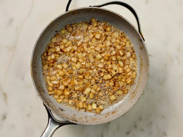 Reduce heat to medium. Add onion to the skillet; cook and stir until soft and golden, 5 to 10 minutes. Add garlic; cook and stir until fragrant, about 30 seconds.