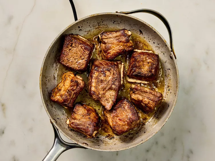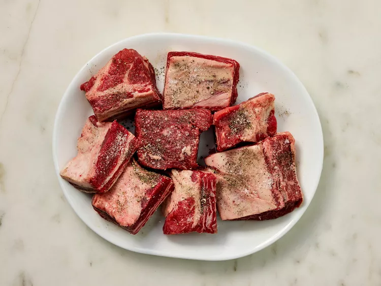 Generously season short ribs with salt and black pepper.